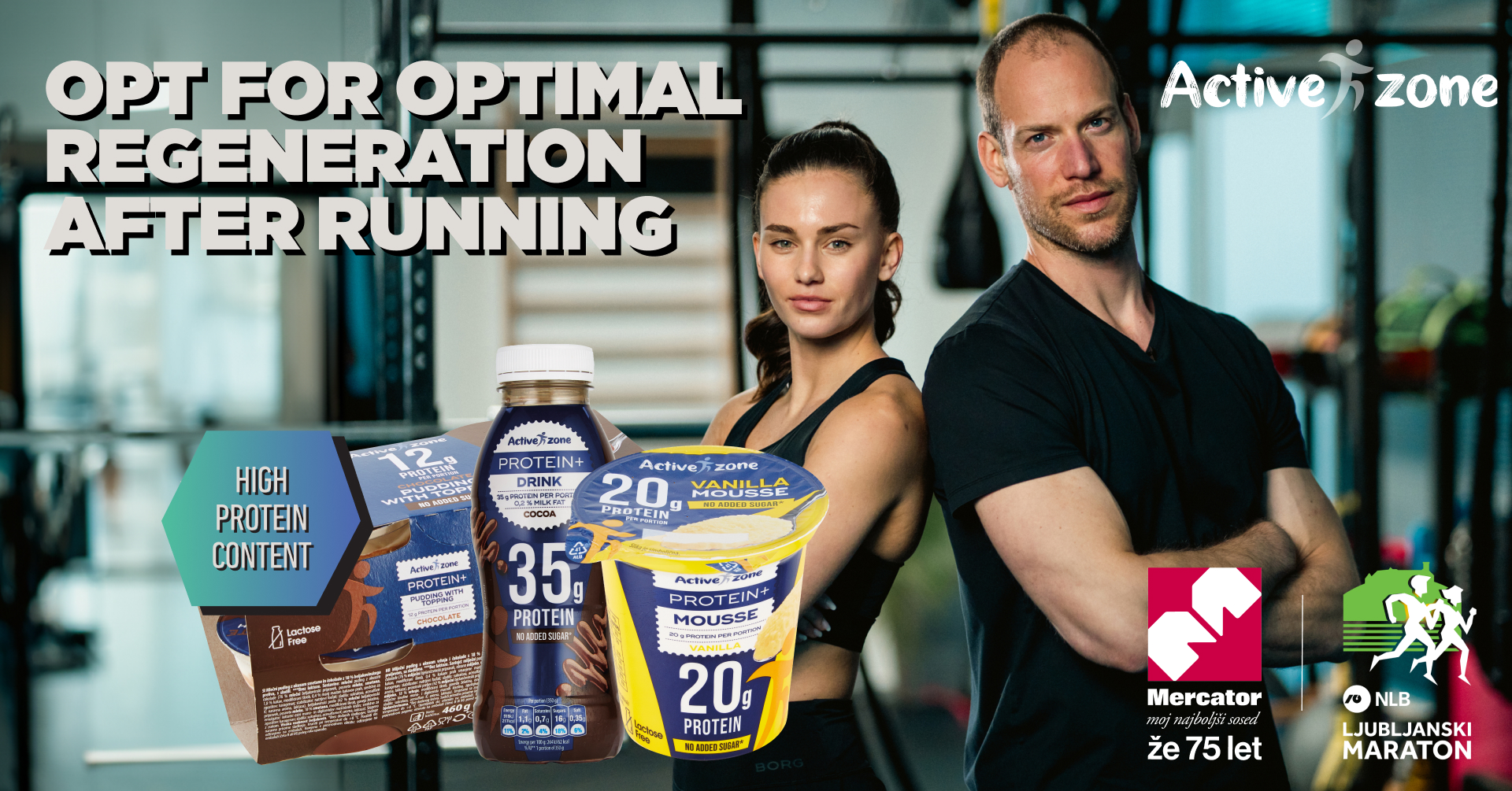 The NLB Ljubljana Marathon is just around the corner, and it's not just fast feet that are important for good running form. Strength and rapid regeneration are also important. Join the 30-day Active Zone Challenge on msoseska.tv and ensure optimal fitness with Active Zone products.  Choose products with a high content of dietary fiber, and above all extremely important proteins: skyr, protein shakes and puddings, 100% peanut butter, as well as new protein lactose free puddings with cream and mousse or bread.