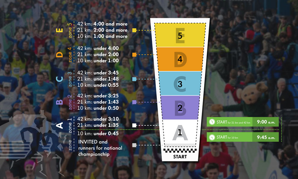 When registering, you will need to select the appropriate running zone based on the estimated running time. Please note that entry into the zone will only be possible with the appropriate tag on your starting number.