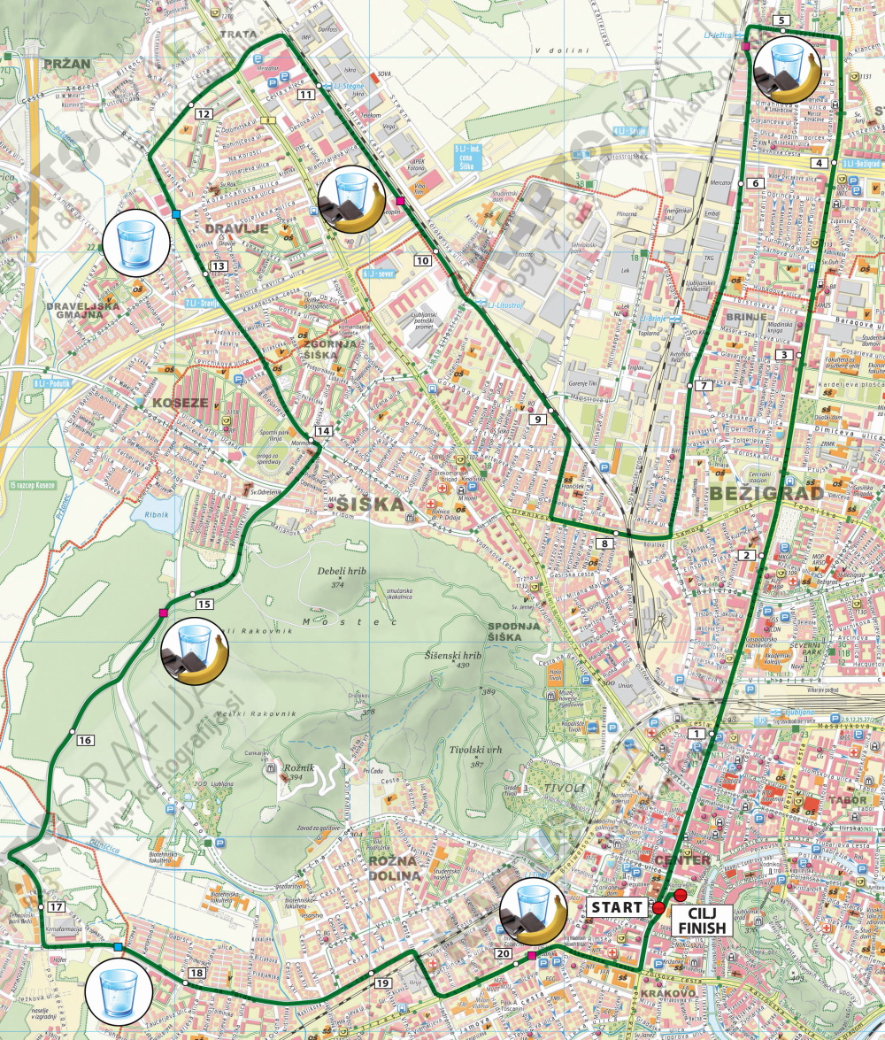 On routh of Garmin 10 km runhalfmarathon and marathon will be also refreshment stations with water, energy drinks (Enervit, Isostar), sugar cubes, salt and fruit (mandarins, bananas).