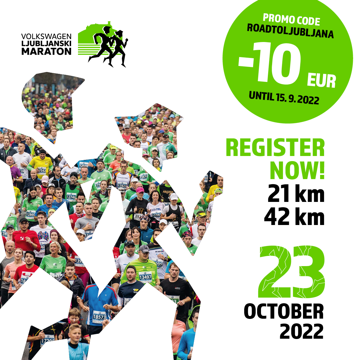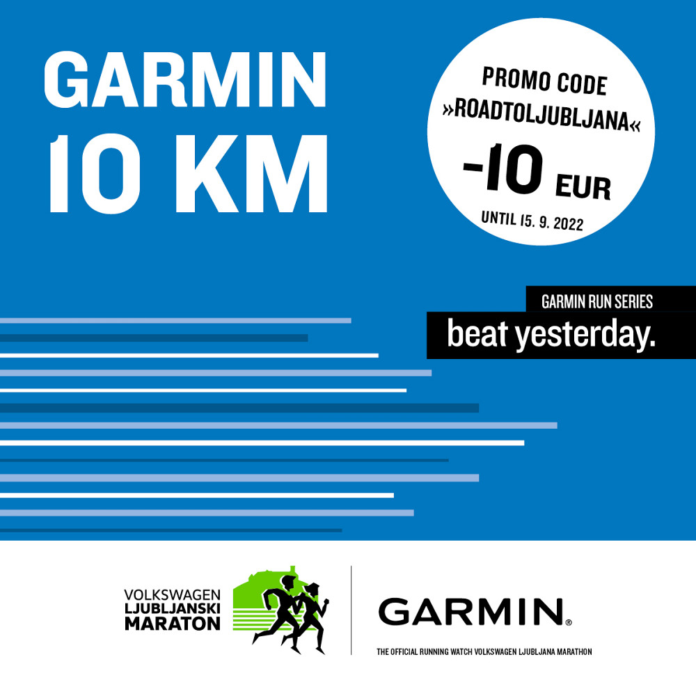 Join more than 7.000 already registered runners for 10, 21, and 42 kilometers and get to know the picturesque streets of Ljubljana on Sunday, October 23rd. Use special codes "ROADTOLJUBLJANA" (valid for 21 and 42 km, between 8 and 15 September 2022) and "GARMIN10" (valid for 10 km) and save 10 euros on registration!