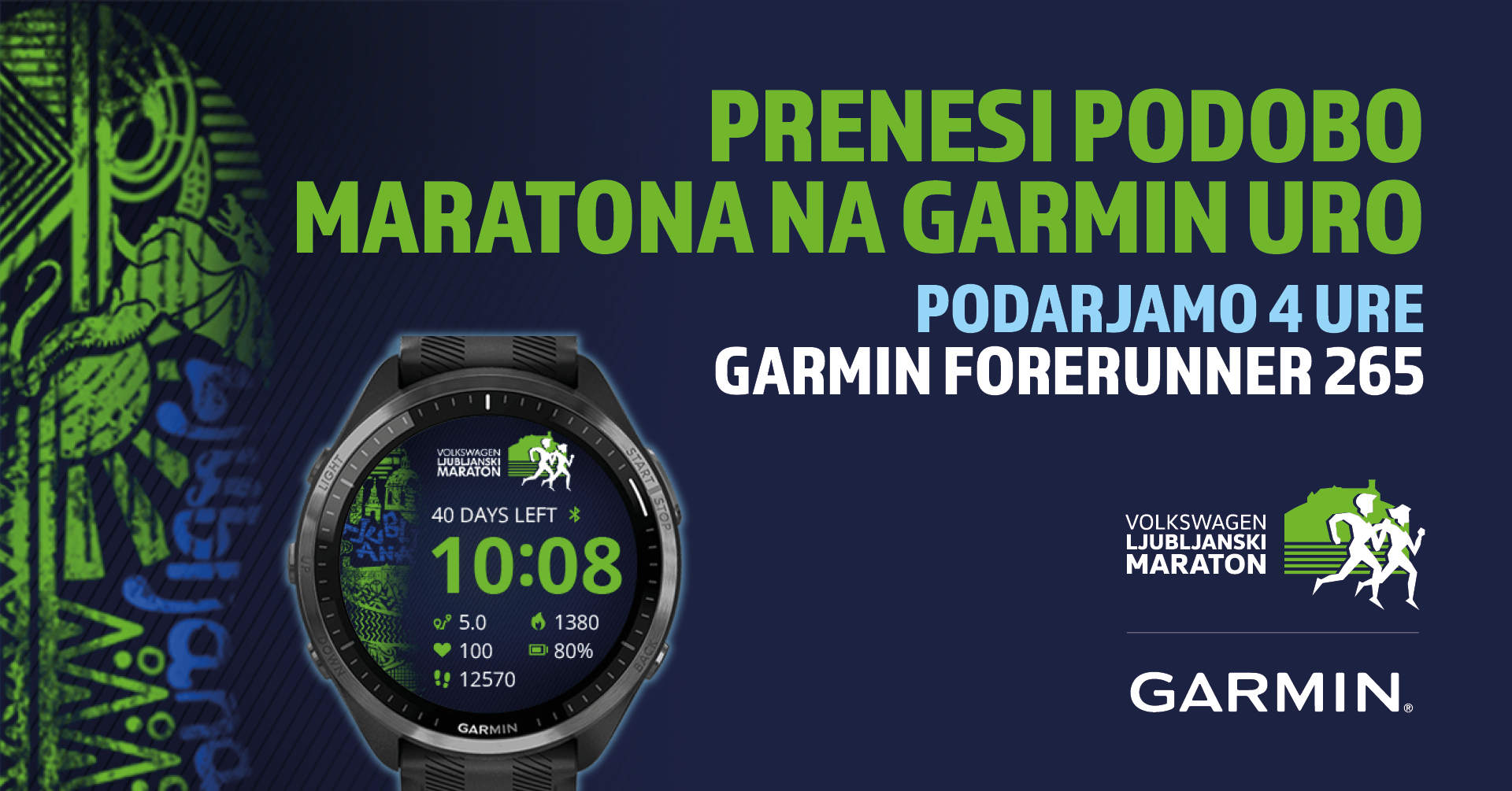 Download Volkswagen Ljubljana Marathon watchface from the Garmin Connect IQ store app to your Garmin watch. Take a picture of your watch with #LJMARATON watchface and post the picture on social media and tag @garminslovenija. Among all published photos published on Instagram and Facebook under #garminslovenija, we will draw 4 lucky winners and give away 4 Garmin Forerunner 265 smart watches.