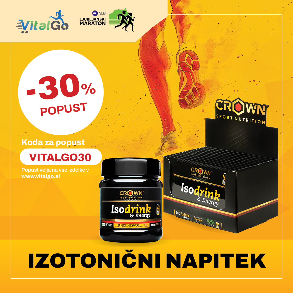 Uporabite kodo VITALGO30 za 30% popusta na vse izdelke v www.vitalgo.si. Popusti se med seboj ne seštevajo.