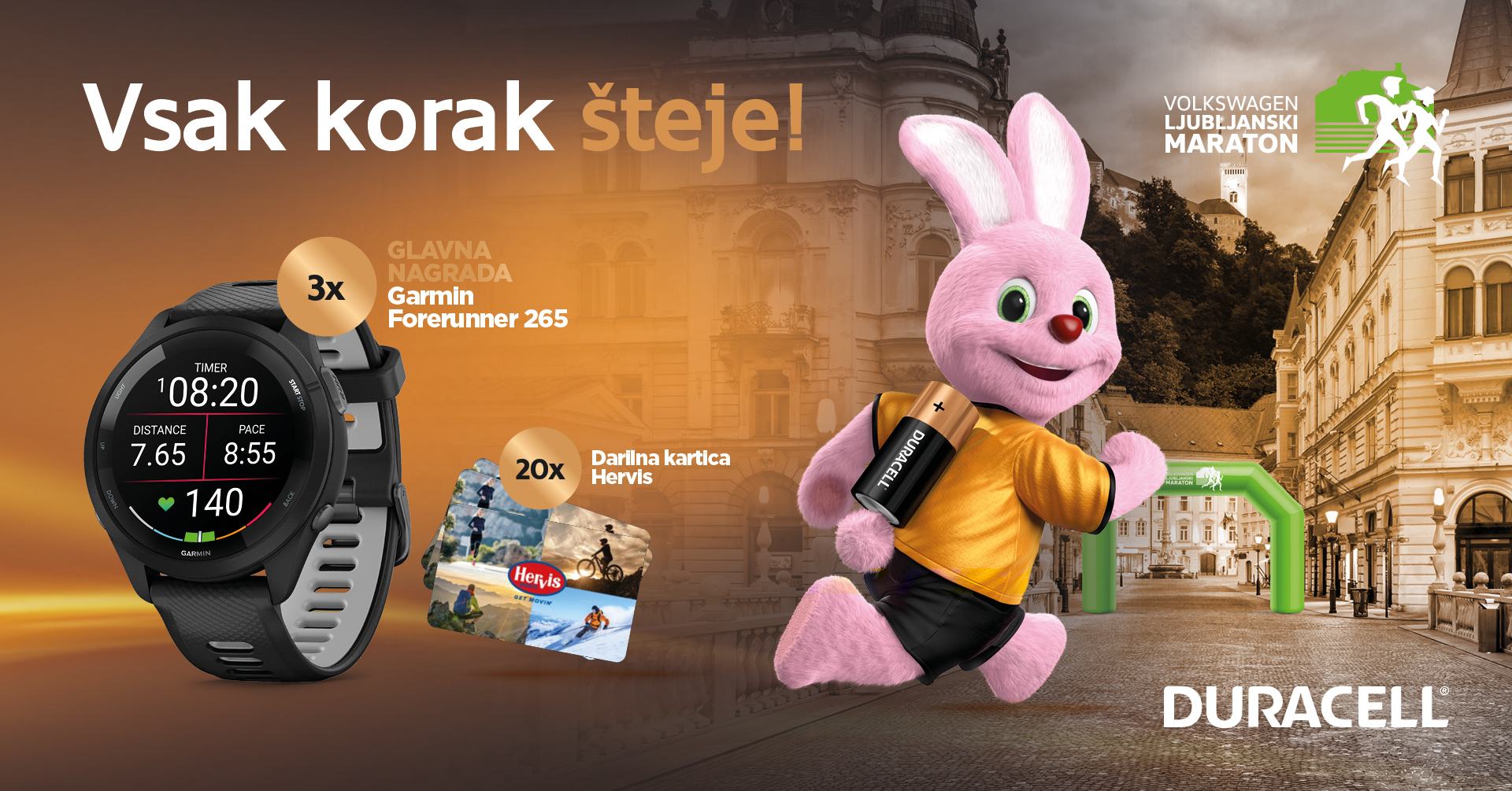 Duracell nadaljuje dolgoletno tradicijo partnerstva s Volkswagen Ljubljanskim maratonom saj je vzdržljivost najmočnejša komponenta maratona, kot Duracell baterije. Duracell te bo vzpodbujal na poti do tvoje velike zmage.