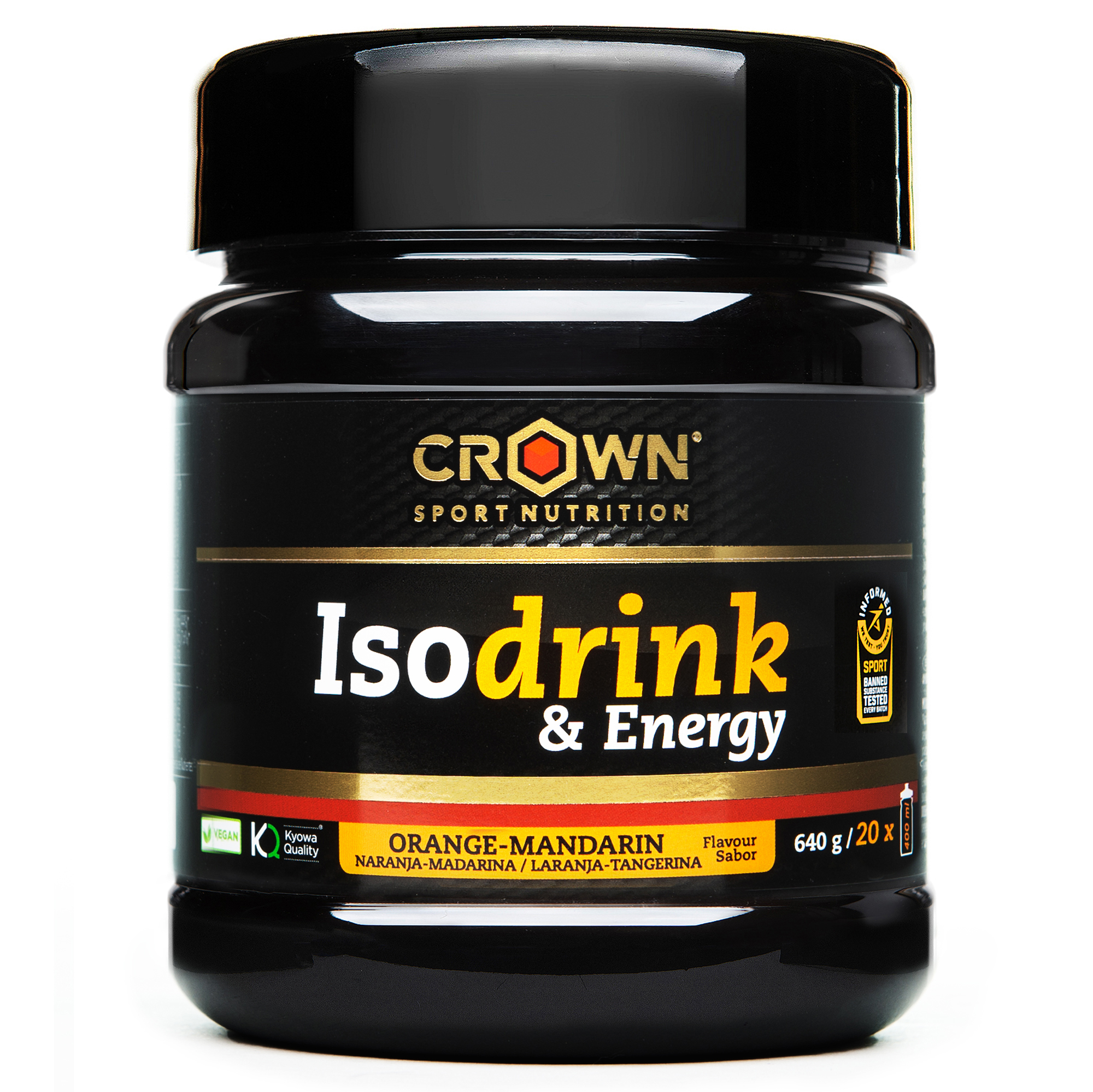 Crown Sport Nutrition Isodrink & Energy je športni napitek v prahu najvišje kakovosti in vrhunske sestave, ki zagotavlja vse potrebne sestavine ne le za vzdrževanje, ampak tudi za izboljšanje učinkovitosti na vaših treningih in tekmovanjih. Vsebuje idealno matrico treh virov ogljikovih hidratov, dekstroze, maltodekstrina in fruktoze, v razmerju 2:1:1. Vsebuje tudi minerale, bolj znane kot elektroliti ali soli, ki poleg že omenjenih koristi izboljšajo tudi antidiuretični učinek, zato se skozi ledvice izloči manj tekočine in posledično se izboljša hidracija.