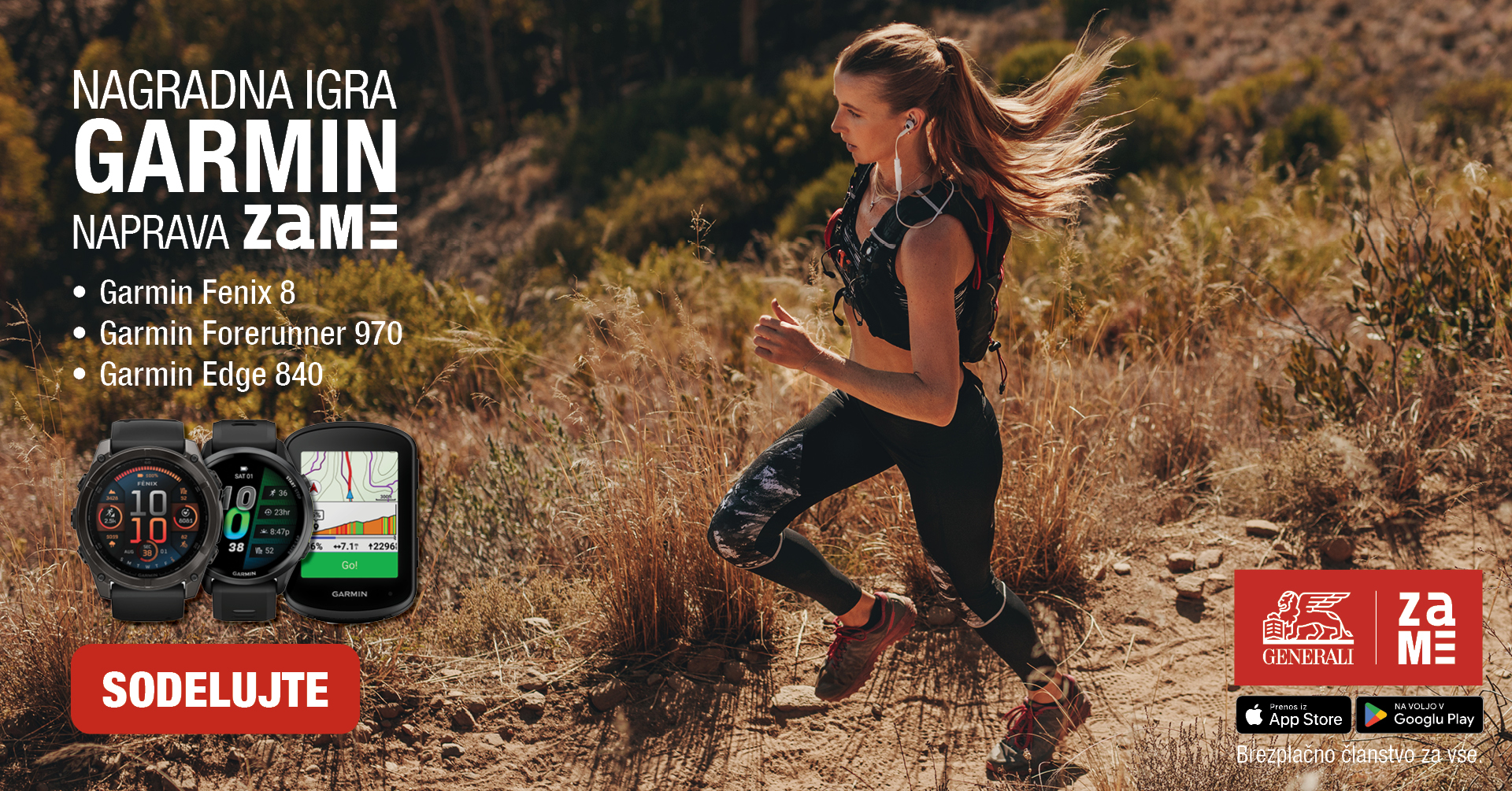 Pripravili smo novo poletno nagradno igro za vse, ki radi ostajate aktivni in spremljate svoje dosežke. Prenesite mobilno aplikacijo Generali ZAME do 7. 9. 2025 ter se potegujte za prestižne pametne GARMIN naprave. Z rednim sodelovanjem v športnih izzivih si lahko povečate možnosti za nagrado.