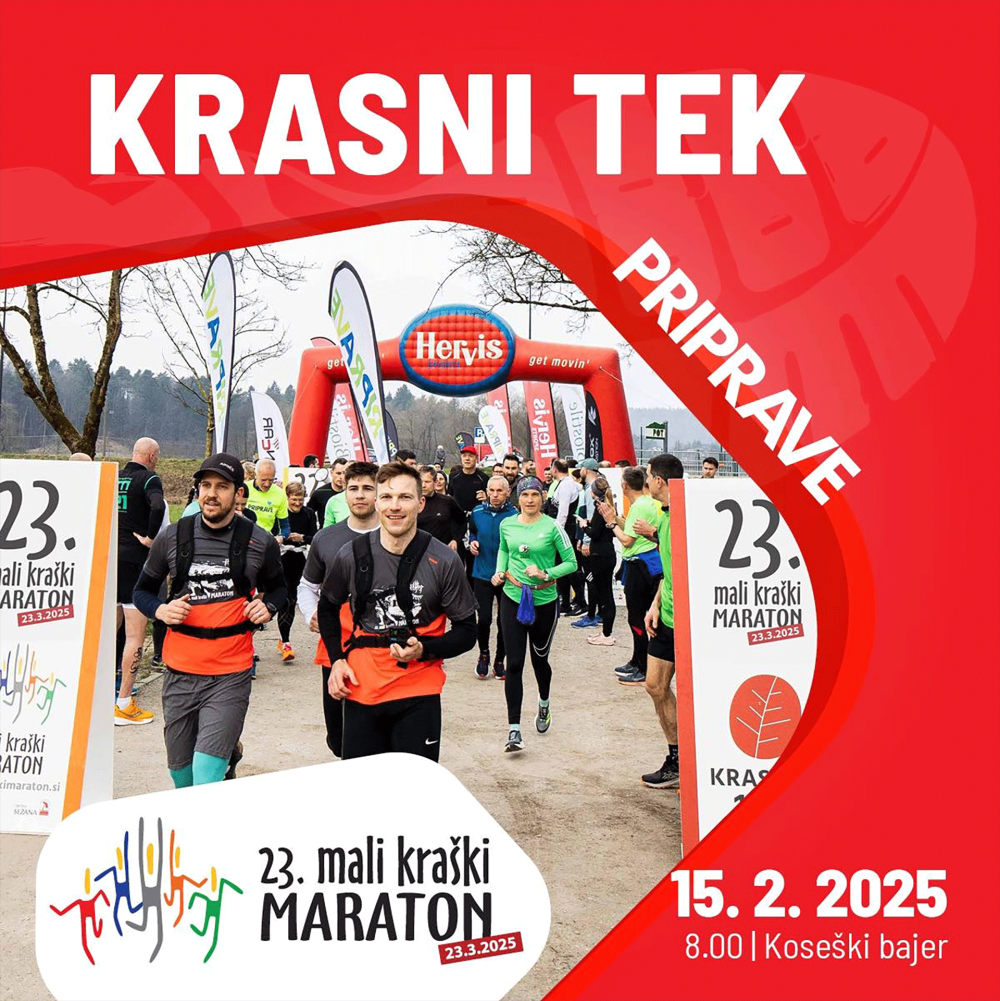 Krašovci pa bodo Mali kraški maraton pripeljali tudi v Ljubljano, imel pa bo okus po pršutu in teranu. Pridružite se jim na netekmovalnem Krasnem teku, ki ga v Ljubljani pripravljajo v soboto, 15. februarja. Zbor bo pri Koseškem bajerju ob 8.00, kjer boste odtekli 7 ali 12 km, nato pa uživali v kraški kulinariki. Obvezna je predprijava.