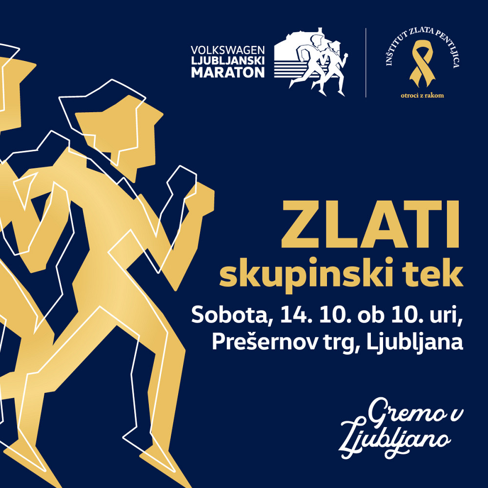 V soboto, 14. oktobra vas vabimo na brezplačni skupinski tek ZLATI TEK pod okriljem Volkswagen Ljubljanskega maratona. Povezujemo tekače v zgodbo »Gremo v Ljubljano«, tokrat s poimenovanjem Zlati tek, saj letos v dobrodelni zgodbi sodelujemo z Inštitutom Zlata pentljica.